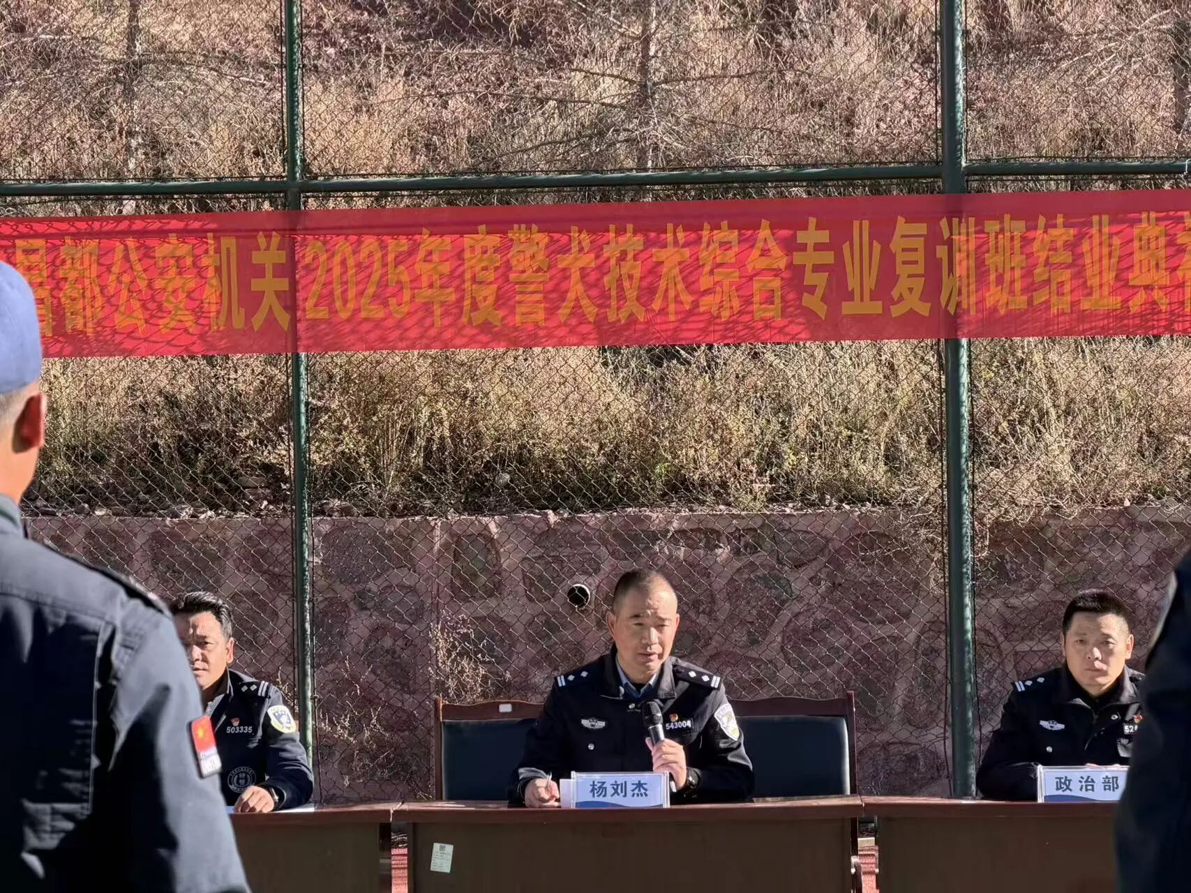 11 月 11 日上午,复训班结业典礼在特警支队隆重举行。市局政治部、特警支队负责同志出席典礼,全体参训民辅警参加。典礼上,对表现优异的参训民辅警进行了表彰,为获奖人员颁发 “优秀训导员” 荣誉证书,激励全体人员以先进为榜样,持续精进业务能力。
